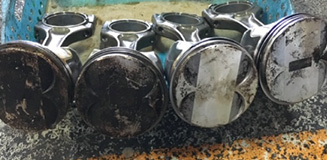 エンジンのオーバーホール時の洗浄液としてもお使いいただけます。右の2つのピストンはステインクリーンを塗布後、ブラシでこすり洗いし、水で洗い流したものです。